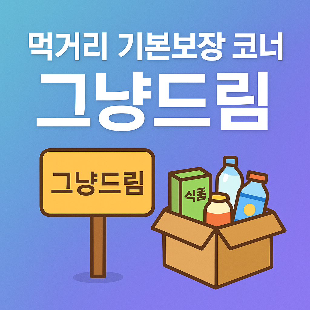 - 그냥드림(먹거리 기본보장 코너)은 별도 신청 없이 먹거리·생필품을 즉시 지원하는 시범사업입니다.